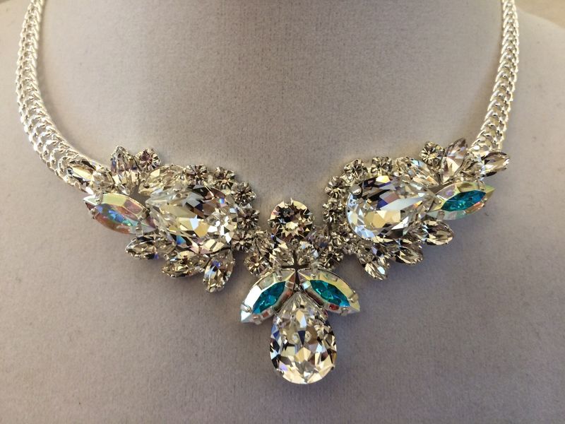 A diamond necklace for a wedding gift is a thoughtful, timeless choice that is sure to match the bride's new wedding ring set. Learn how to pair jewelry with sweetheart necklines, match necklaces for strapless dresses, & more! A quintessential bride is incomplete without wedding necklace sets that brighten her ensemble and a glistening gold or sparkling silver wedding necklace set that is encrusted with twinkling gemstones. This beautiful bridal necklace is made with a sparkly swarovski pure brilliance cubic zirconia component that i finished with swarovski pearls.